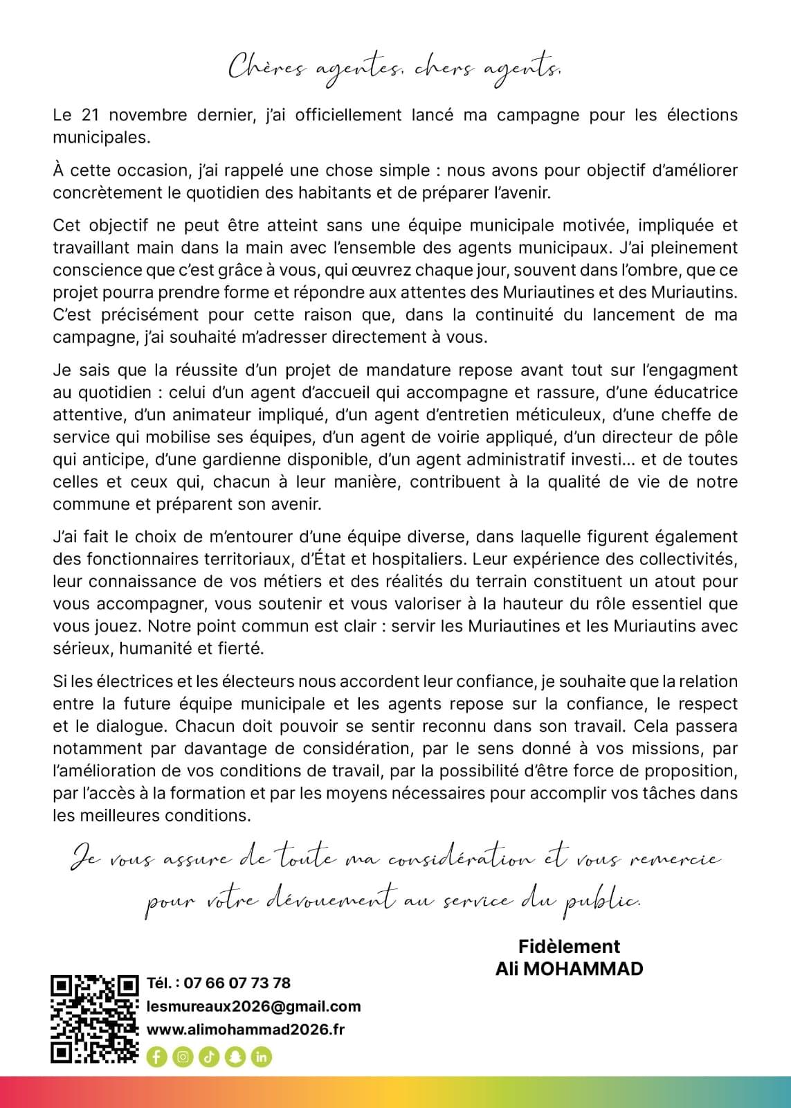 Les Muriautins nous ont parlé d’école, d’avenir pour leurs enfants, de logements dégradés, de solitude, de santé qui se fragilise, d’associations qui peinent à exister. Ils veulent une ville plus douce, plus vivante, plus solidaire. Oui, la ville s’est transformée, mais à force de construire des murs, on a oublié de construire des ponts.